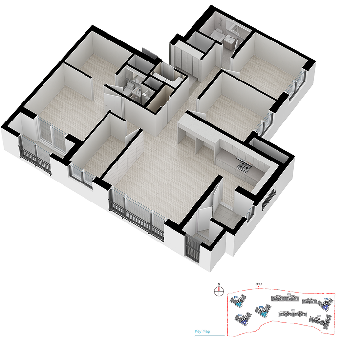 아이소 및 평면도에 표현된 마감재(가구류, 문짝, 창호, 타일, 도배지, 바닥재)의 형태, 재질, 색상은 입주자의 이해를 돕기 위해 임시 구현된 것이며, 실제 시공시 변경될 수 있습니다.